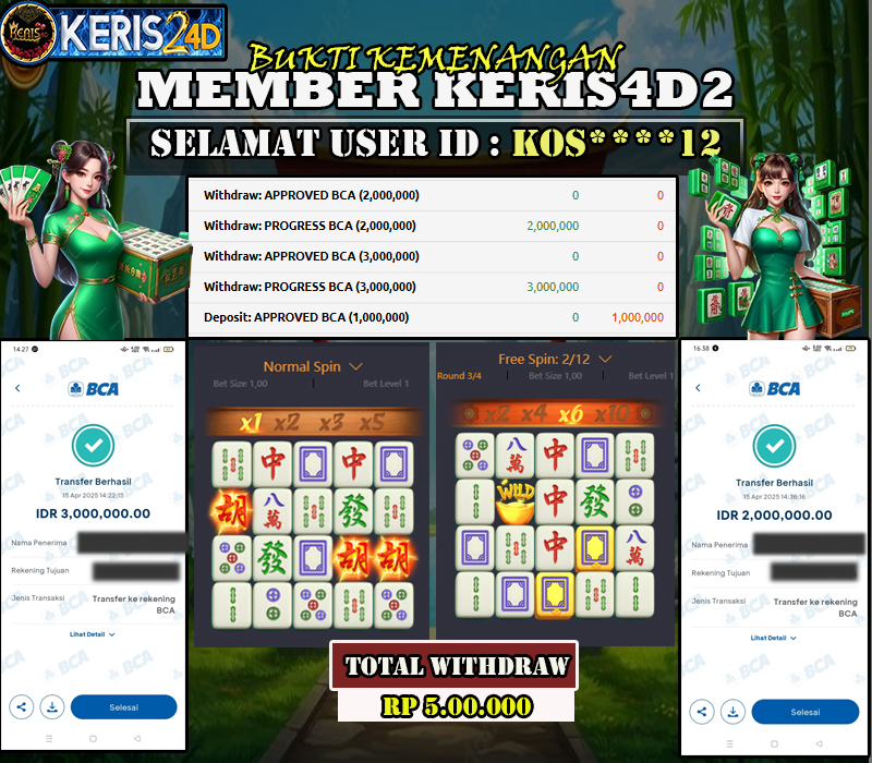 Setiap hari, member KERIS24D berhasil meraih jackpot besar dari berbagai provider slot ternama yang kami sediakan, seperti Pragmatic Play, Habanero, PG Soft, dan masih banyak lagi. Kami secara rutin menampilkan bukti screenshot atau rekapan kemenangan yang berhasil diraih, mulai dari kemenangan ratusan ribu hingga puluhan juta rupiah. Semua slip kemenangan ini kami hadirkan untuk membuktikan bahwa di KERIS24D, peluang menang itu nyata.