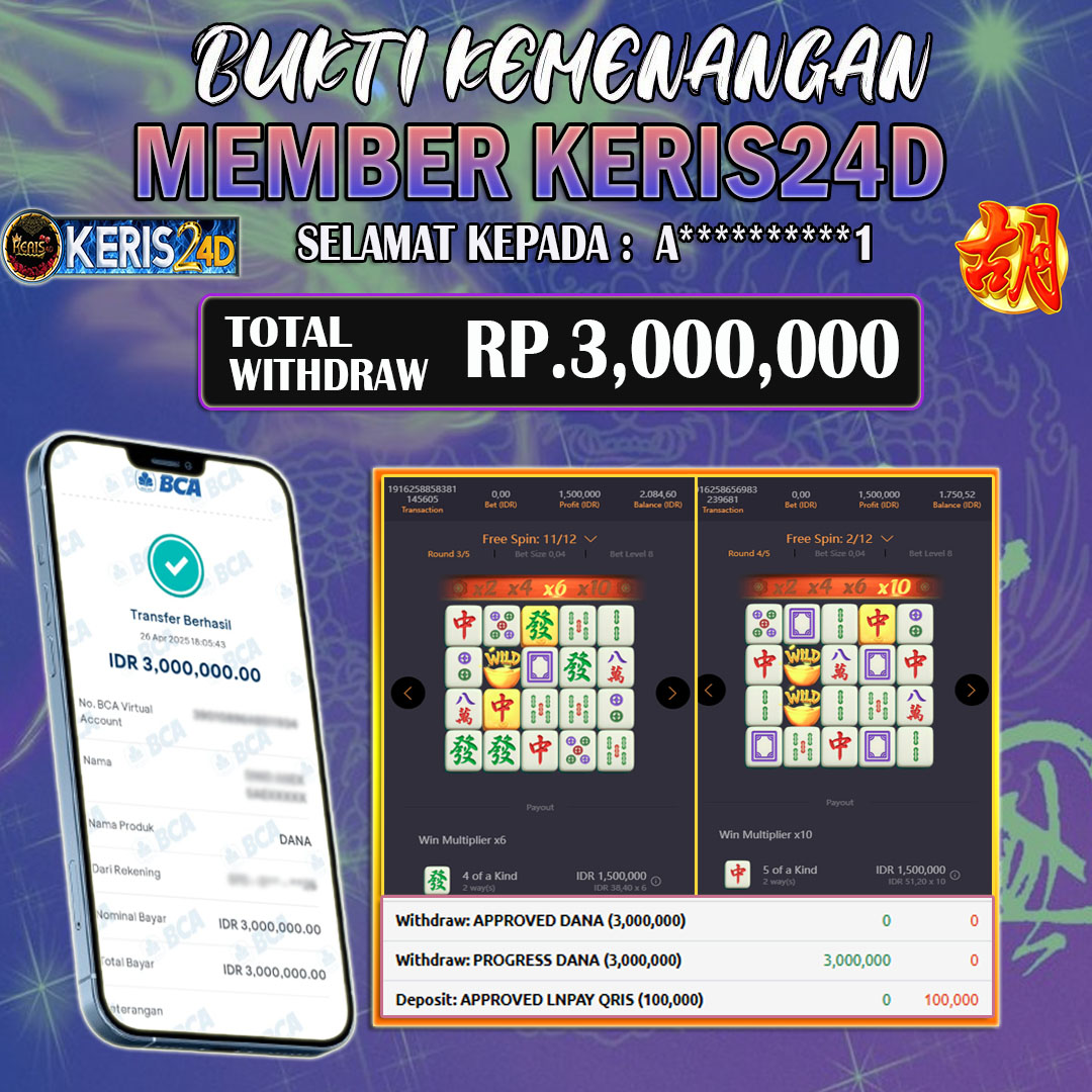 Satu lagi Bukti JP dan Pembarayan Sah Dan Dapat Dipertanggung Jawabkan, WD Berapapun Pasti Dibayar Lunas Hanya di Situs KERIS24D. Hati Hati Kepada Pihak Pihak Yang Mengatas namakan Pihak KERIS24D Untuk Melakukan Penipuan.