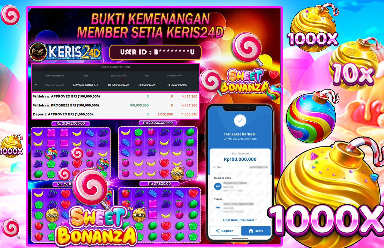 JACKPOT SLOT SWEET BONANZA l 27 MEI 2025, Jackpot Slot Gacor, Kemenangan Slot, Bukti Kemenangan Slot, Kemenangan Slot Pragmatic Play, Menang Slot online, Slot Gacor, Situs Aman Terpercaya, WD Berapapun Pasti DI Bayar Tuntas, Maxwin Slot Online.